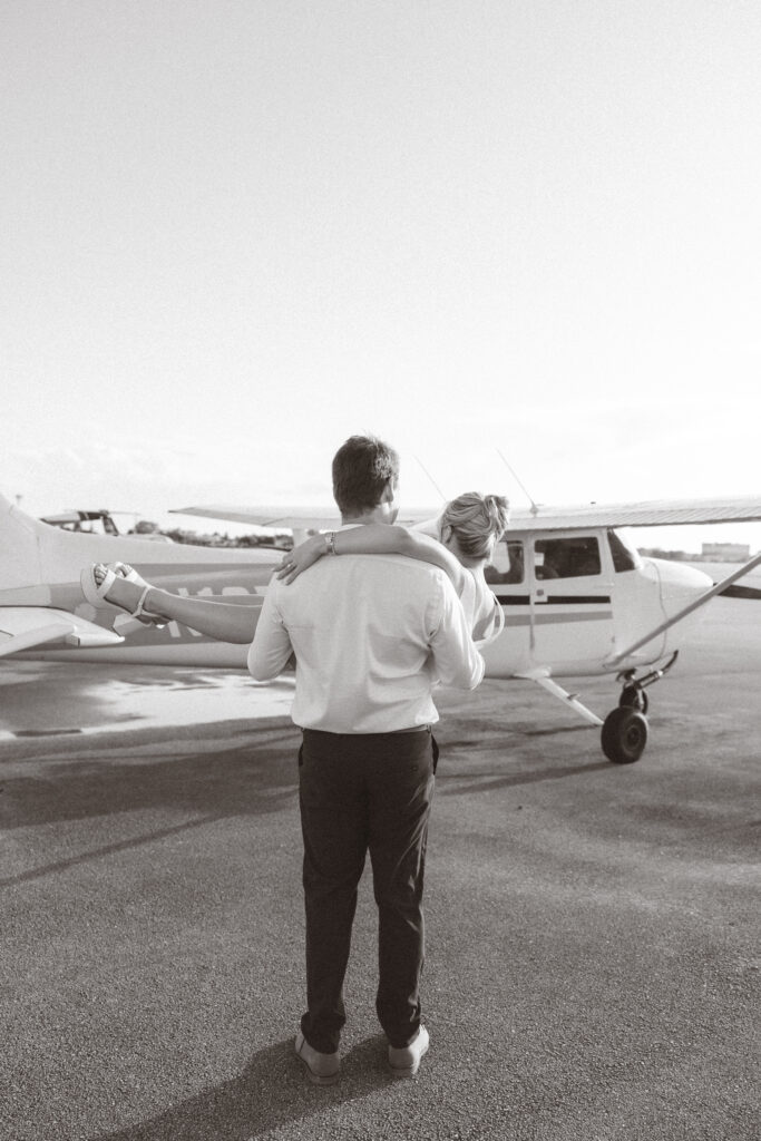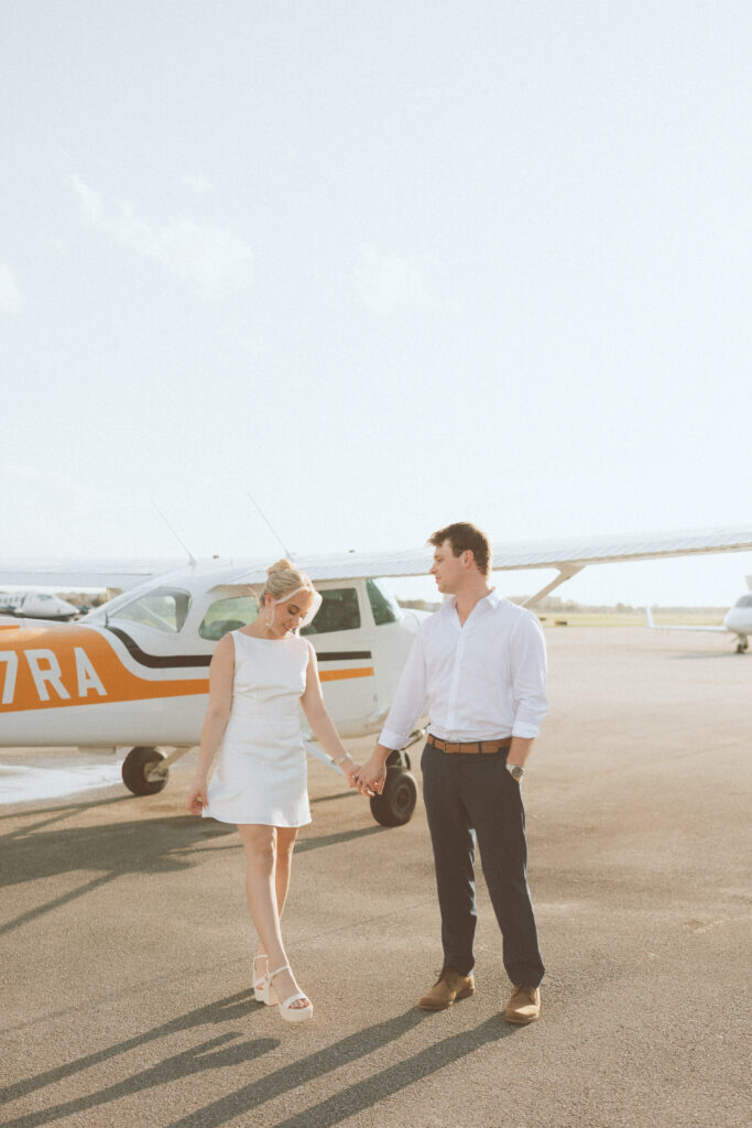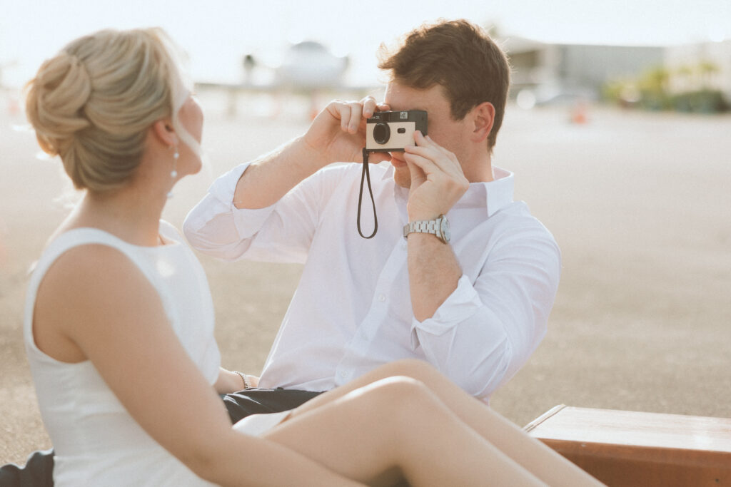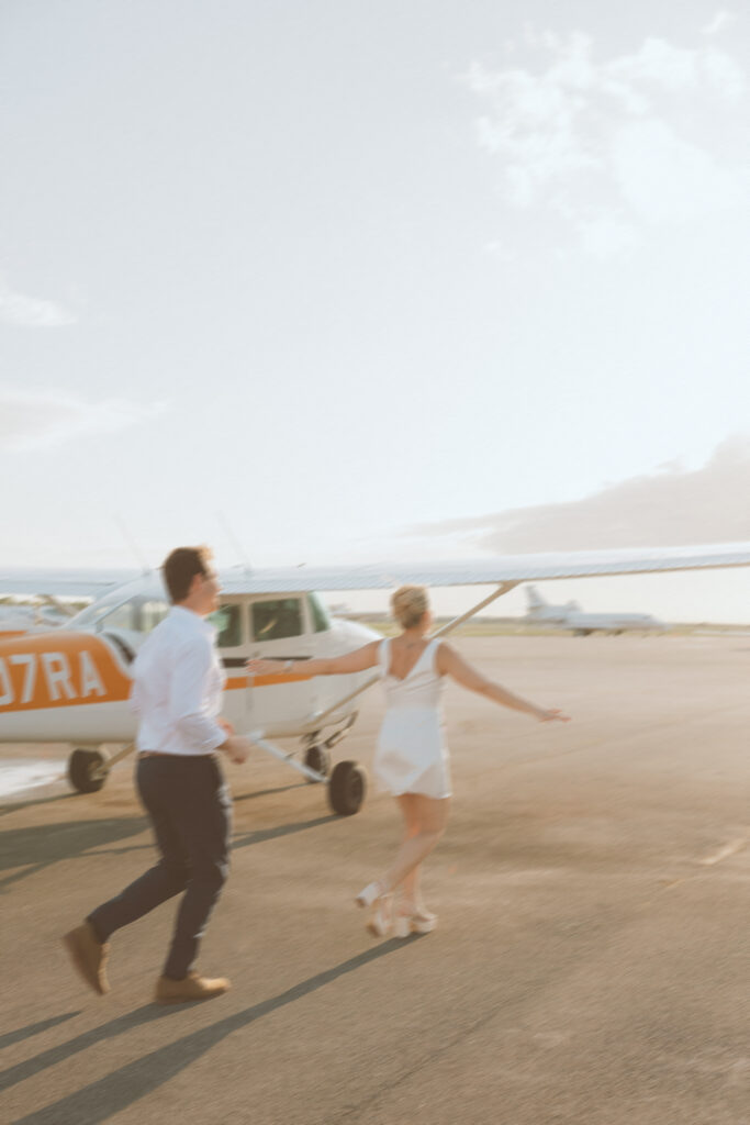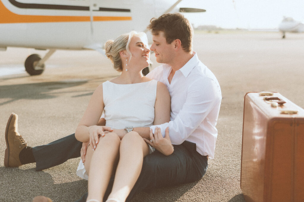 Brittany and Jarrett wanted something unique for their engagement session, so we decided to bring their love of travel to life with planes.