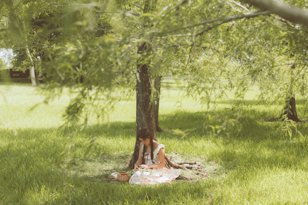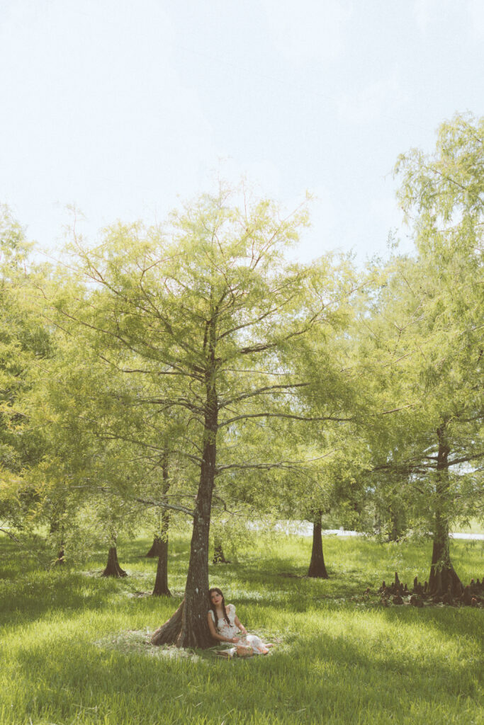 As we wandered through the park, we stumbled upon a charming little area that felt like a hidden forest, where the magic truly began. The sunlight peaked through the trees, casting a golden glow as she made a flower crown.